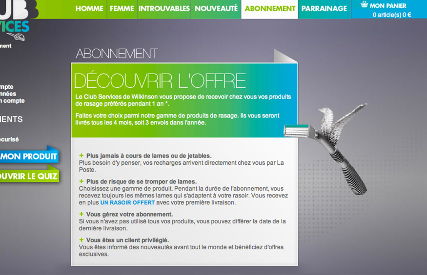 5emegauche es una de las agencias creativas de publicidad más grande de Francia. Durante varios años nos delegaron proyectos grandes para sus marcas de primera línea como el caso la aseguradora CLUB 14 (del grupo AXA) y Wilkinson (afeitadoras). Con ambas campañas digitales la agencio recibió premios por los desarrollos.