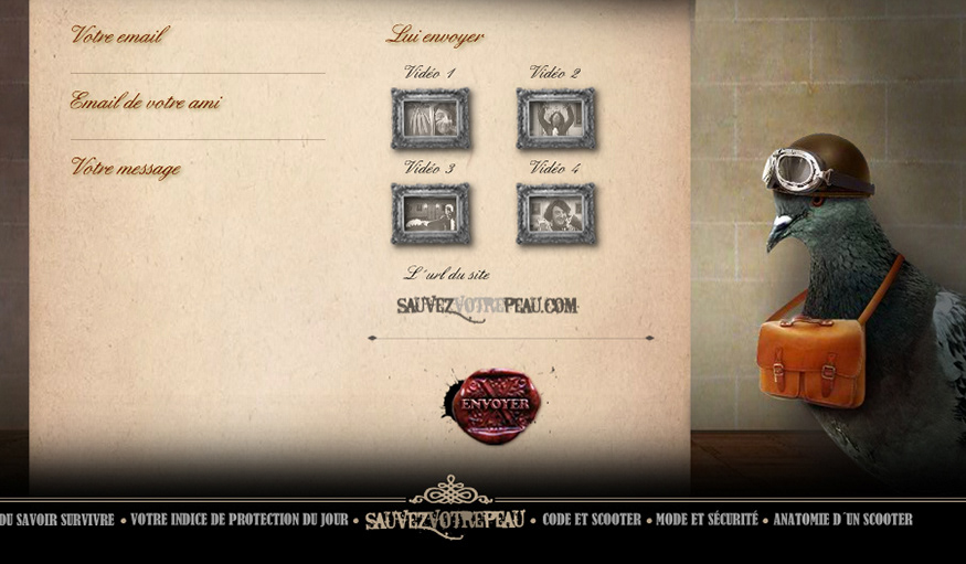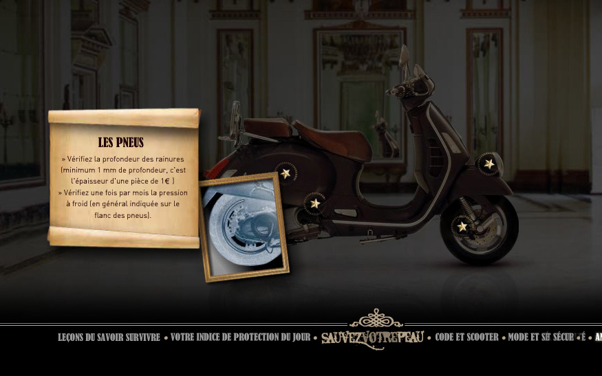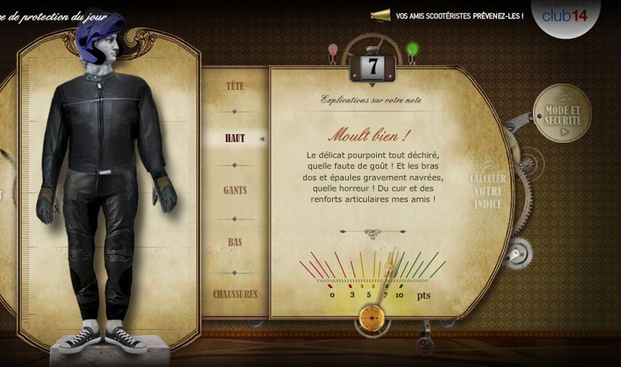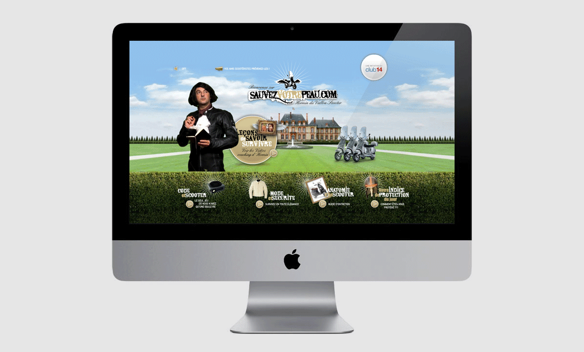 Sauvez Votre Peau significa “Salva tu pellejo”. Creamos para la empresa francesa Club 14 un sitio de concientización social para el correcto uso de las motos. Para atraer a la mayoría de los “motoqueros”, y no etiquetarla como una típica ONG sin gracia, se definió acudir al humor y a la ironía a través del personaje “Hermin”. Logramos un sitio interactivo con juegos para generar empatía con nuestro target y generar mucho tráfico.