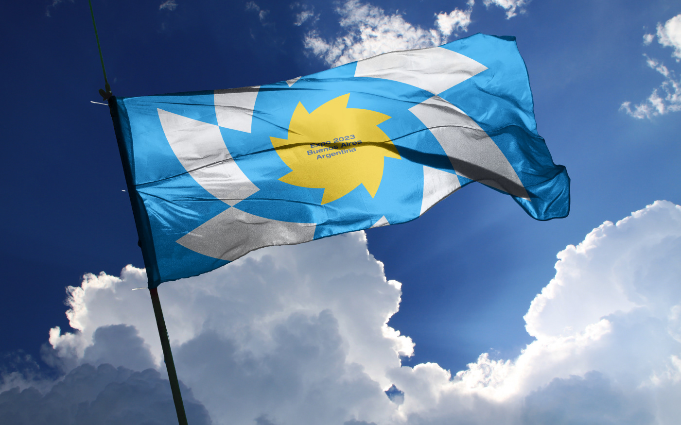Expo 2023 is in Argentina, that's why we thought it was important to embed our own version of the May Sun in the symbol, giving an Argentinian and Latin touch to it.