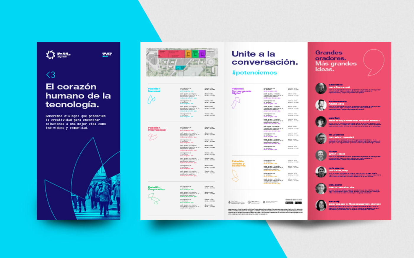 The spirit and vision of our proposal stands around convergence, conversation and meeting point for exchanging ideas, that’s why we started the symbol from the dialog bubble.