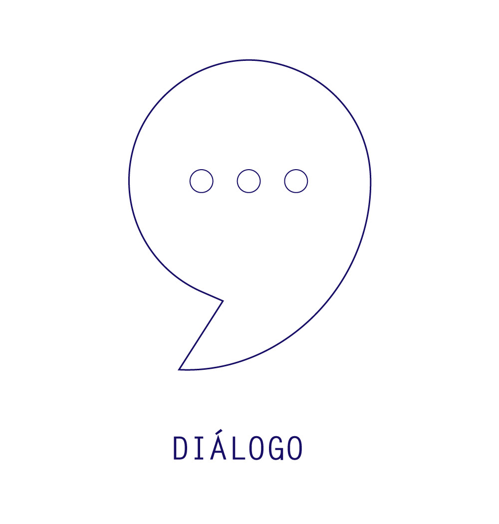 Nuestra propuesta gira alrededor de la convergencia, la conversación y punto de encuentro para el intercambio de ideas, por eso partimos de la síntesis de la burbuja del diálogo para el símbolo.