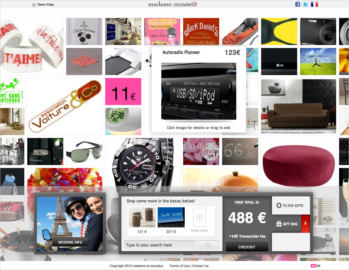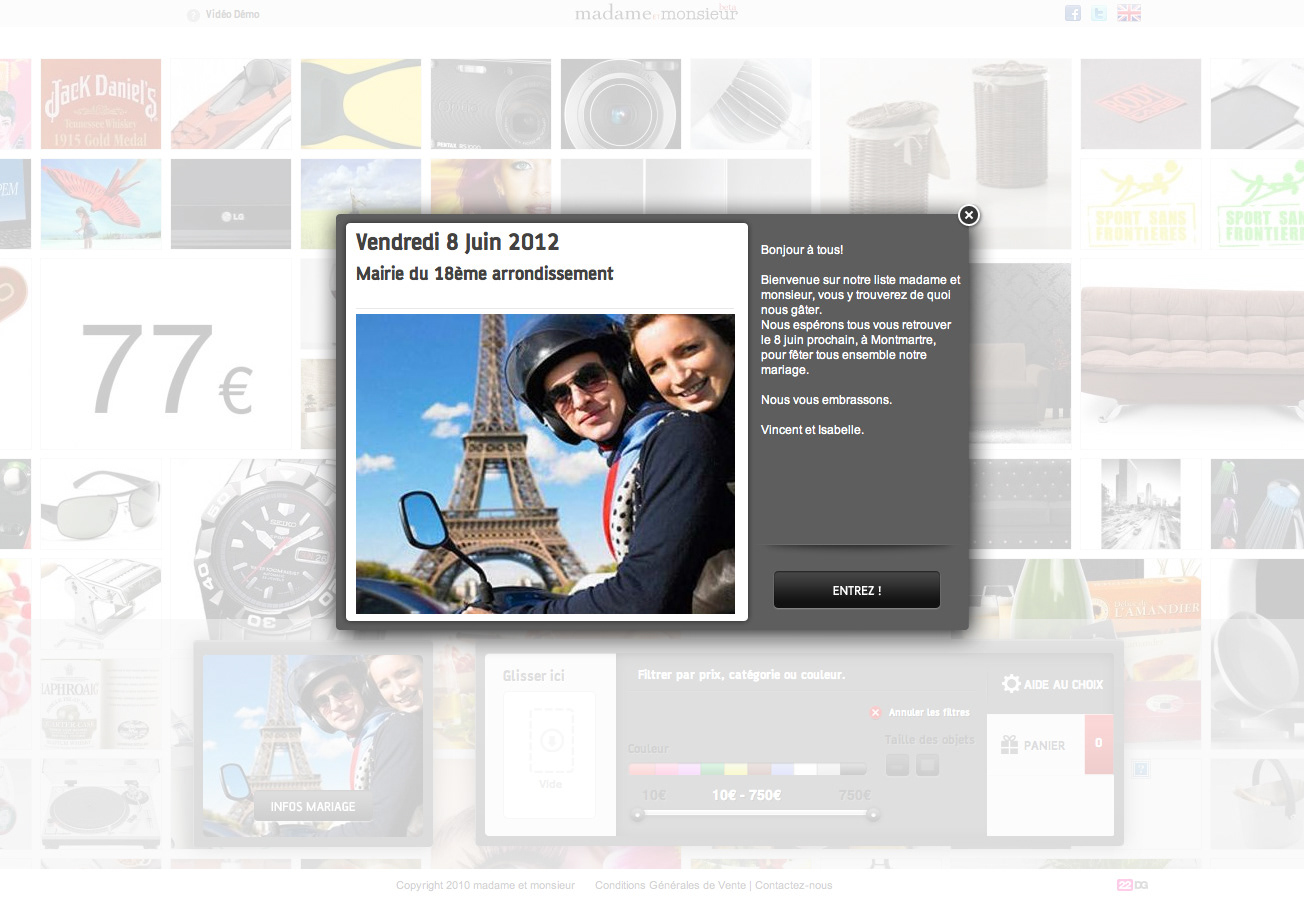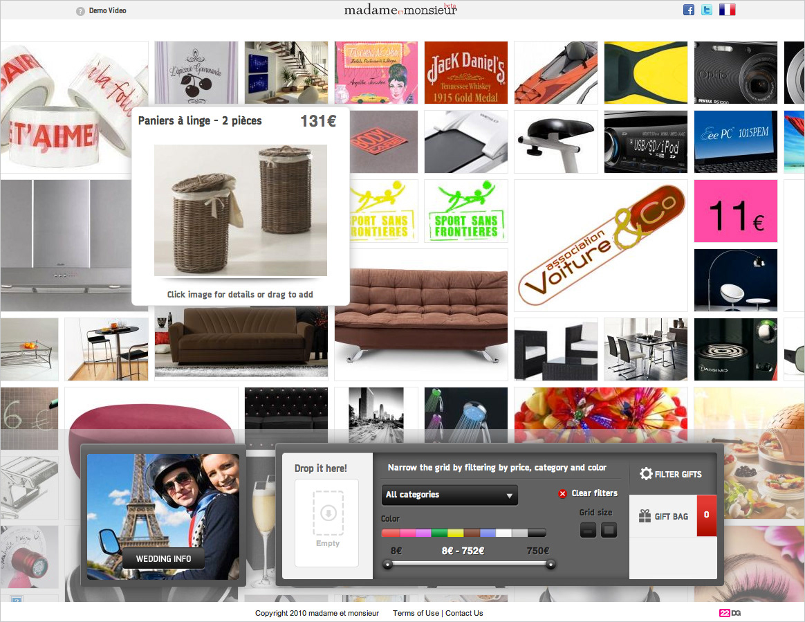 Si vamos a conceptualizar y diseñar un sitio de regalos para casamientos, es necesario hacer uno que rompa con todos los existentes y que sea el mejor. Esto fue lo que le ofrecimos a Madame Et Monsieur. Su fácil navegabilidad y sentido común, hace de comprar un regalo una experiencia interactiva.