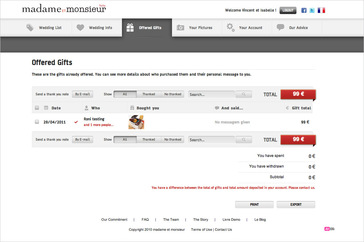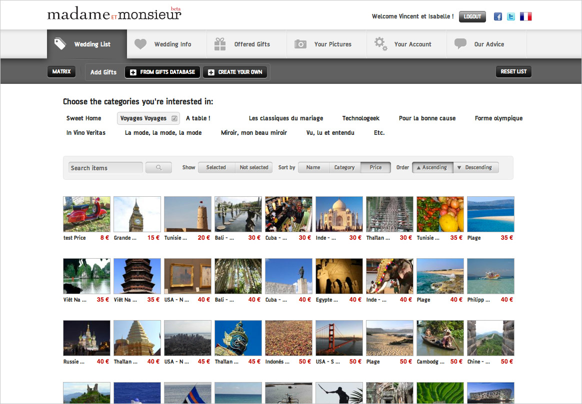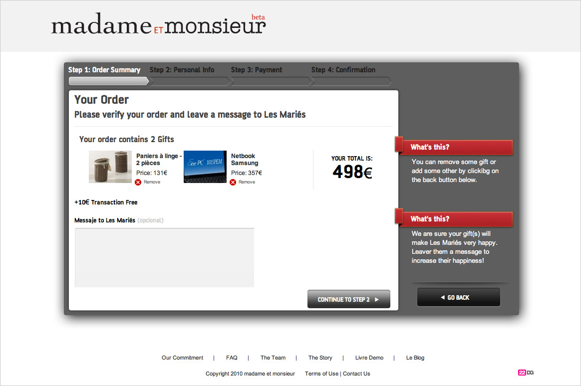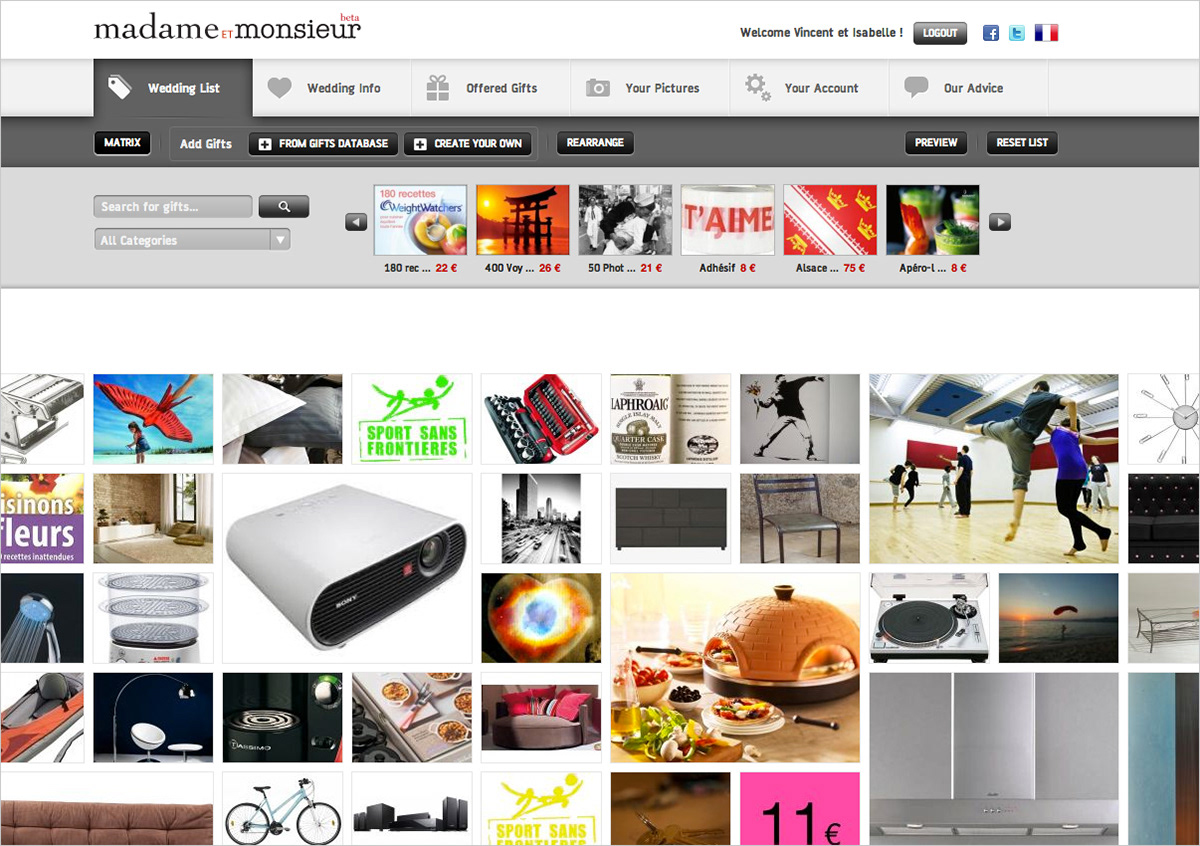 Si vamos a conceptualizar y diseñar un sitio de regalos para casamientos, es necesario hacer uno que rompa con todos los existentes y que sea el mejor. Esto fue lo que le ofrecimos a Madame Et Monsieur. Su fácil navegabilidad y sentido común, hace de comprar un regalo una experiencia interactiva.
