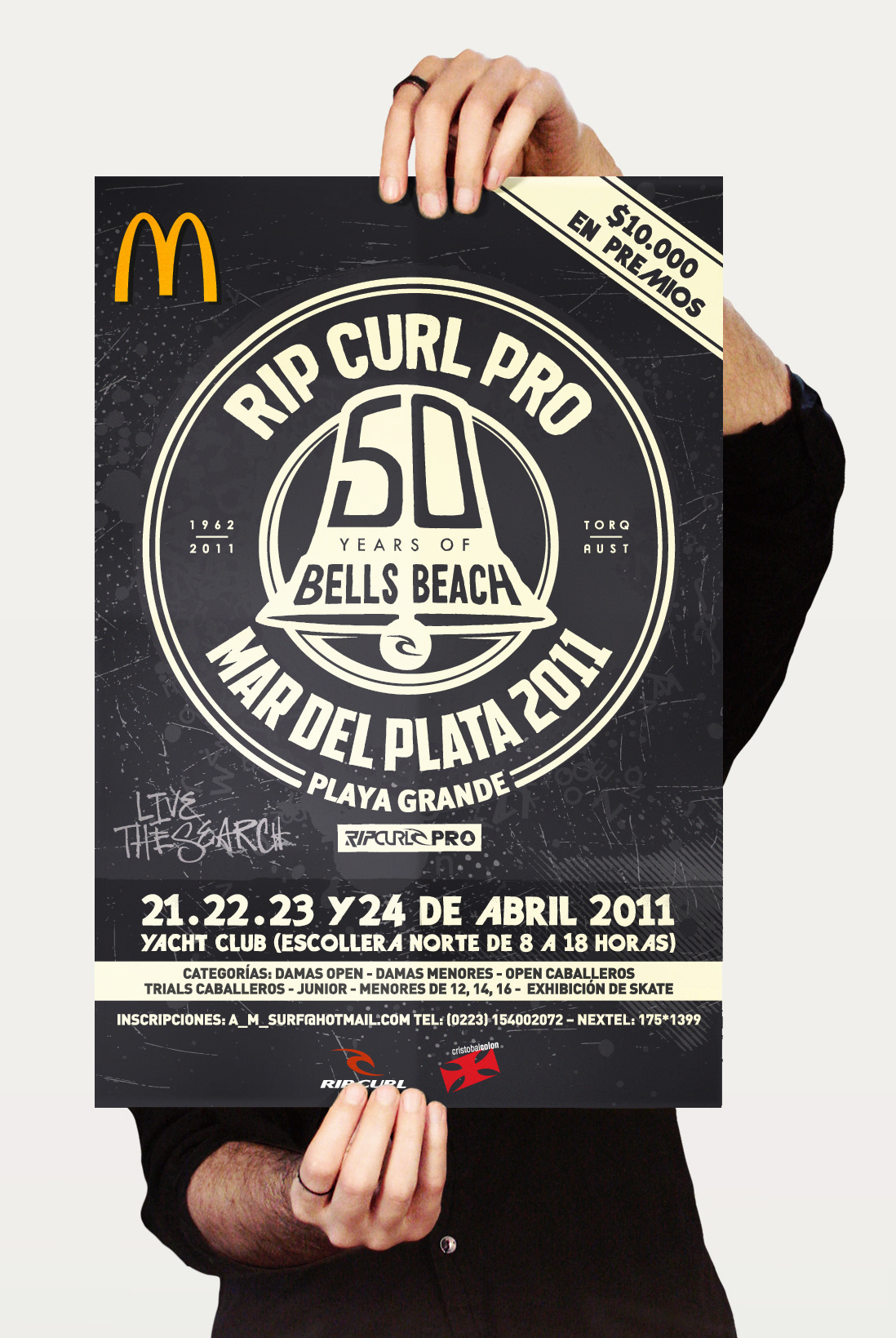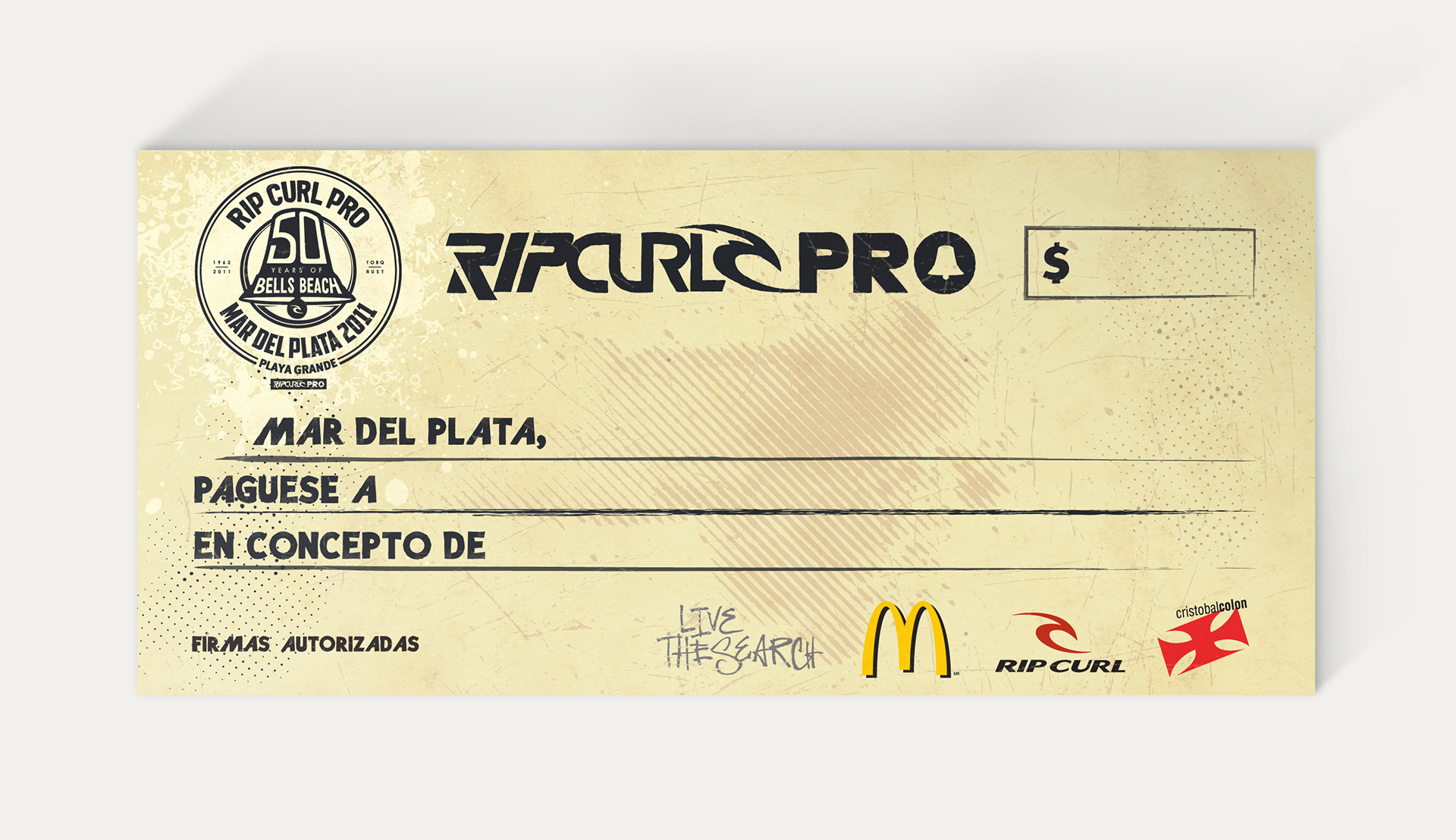 Rip Curl Argentina developed their surf contest "Bells Beach" at Mar del Plata and our challenge was giving a strong identity to it so it can be applied to all pieces of the event.