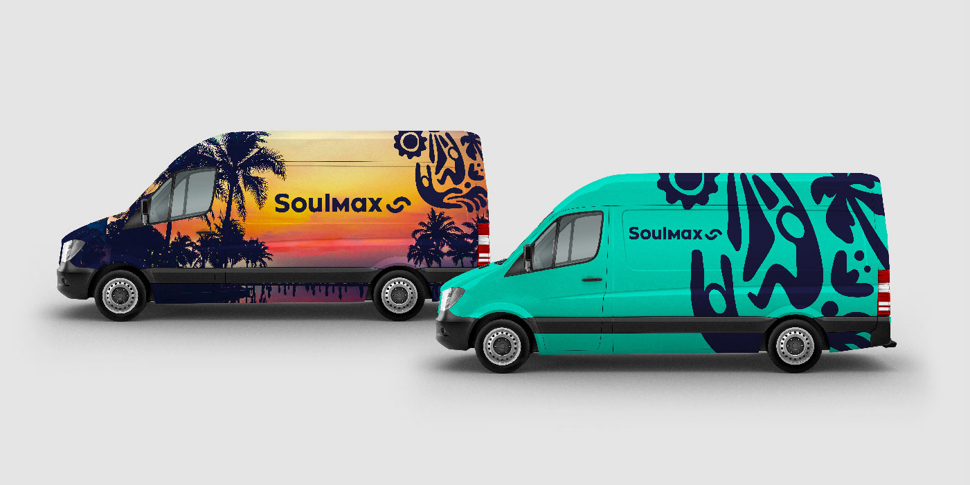 La idea que llevamos adelante fue tomar la "S" y embeberle los conceptos fundacionales de la marca con íconos de la identidad que hicimos para Soulmax.