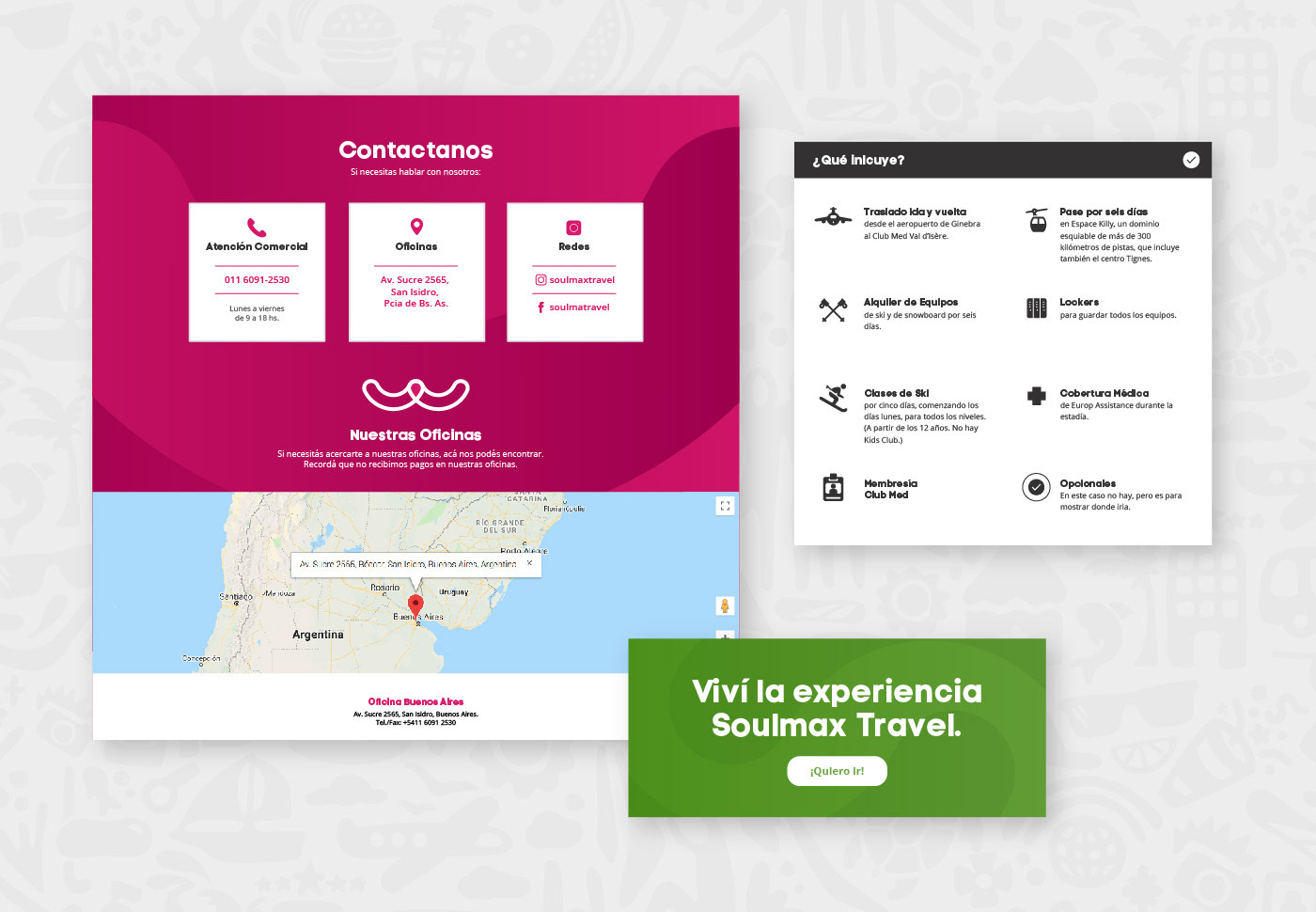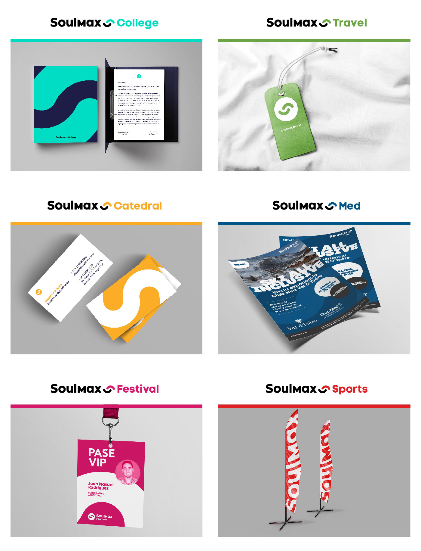 Parte del rediseño de la marca Soulmax (se puede ver acá), incluía armar un sistema gráfico lo suficientemente flexible para que soporte las distintas unidades de negocio que abarca la empresa con más de 20 años de experiencia en viajes.