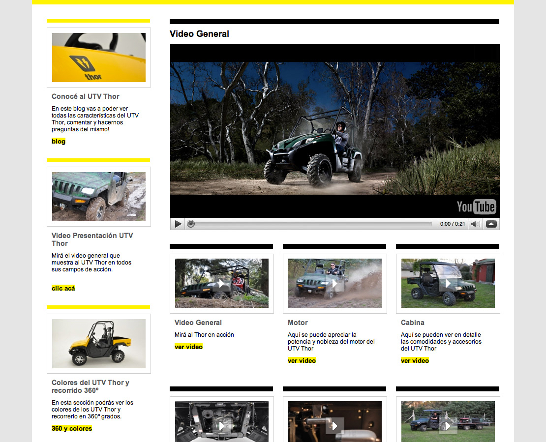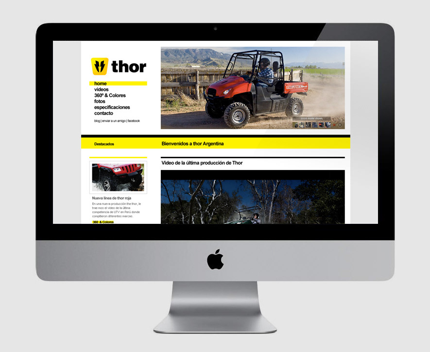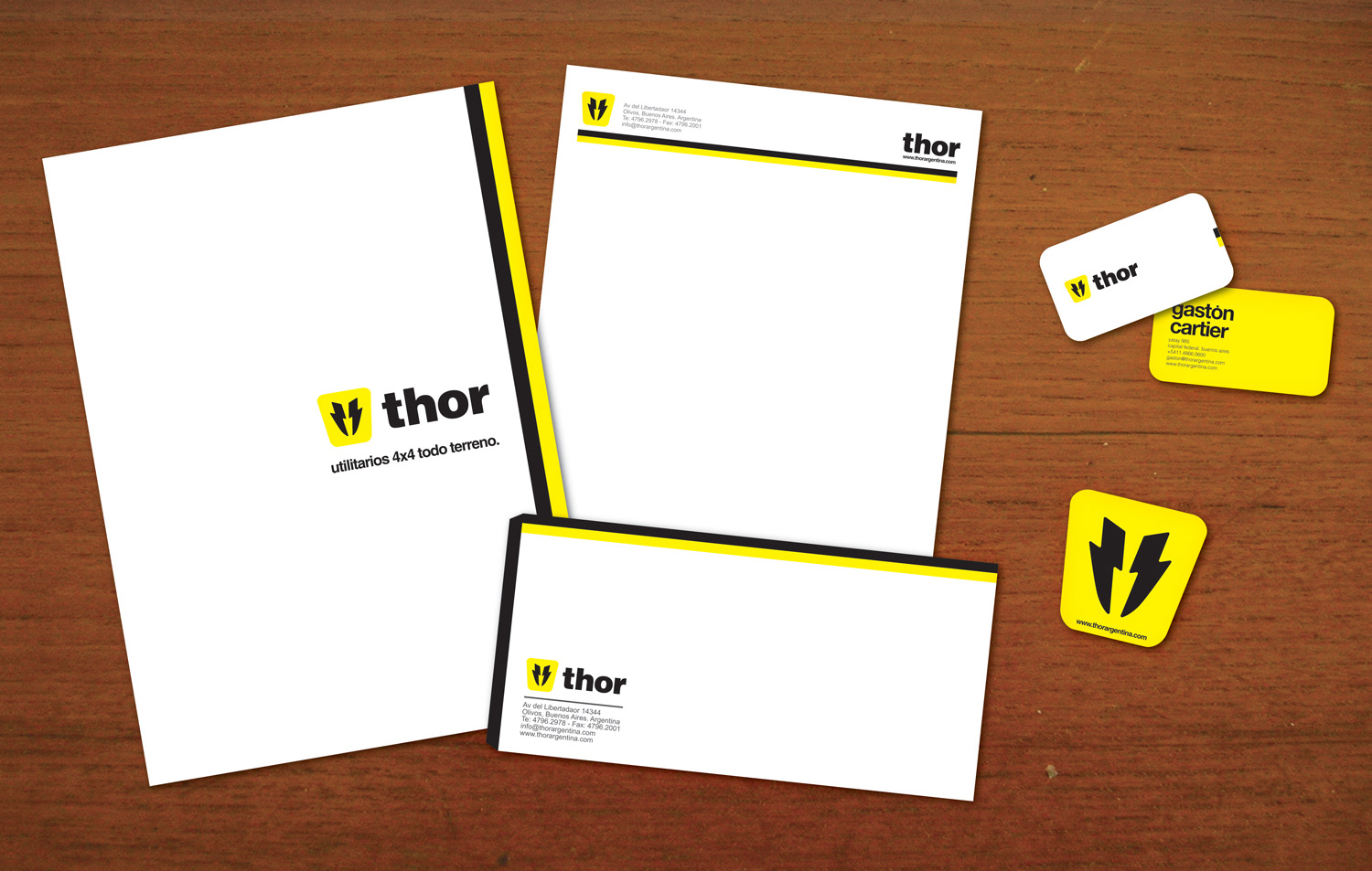 Una nueva marca de jeeps utilitarios vino al estudio para desarrollar desde su identidad hasta su lanzamiento. Pensamos un concepto fuerte y racional que transmita el espiritú de Thor, mediante una paleta de colores y simbología con personalidad fuerte y agresiva, potenciando la dureza del producto.
