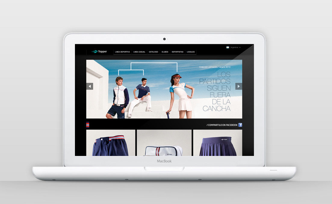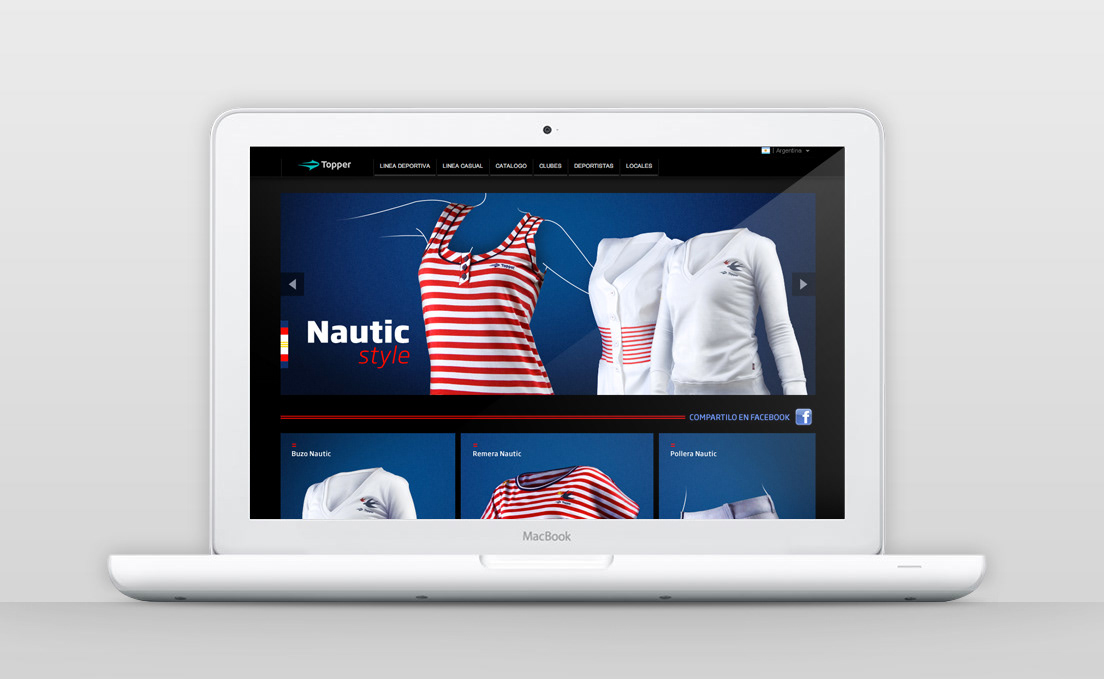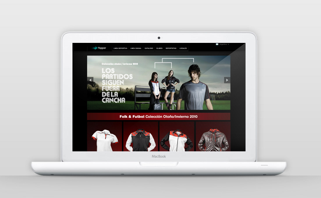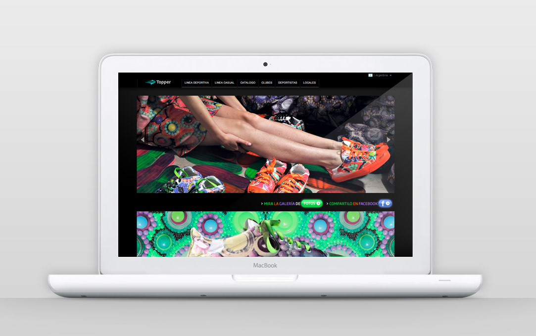 Topper necesitaba comunicar sus distintas líneas de indumentaria bajo un mismo concepto gráfico que resalte cada una de las prendas. Desde el estudio nos encargamos de realizar piezas de gran impacto, coloridas y que puedan convivir, por más distintas que sean, dentro del site. Trabajamos en equipo día a día con el cliente ofreciéndole una solución a cada desafío.